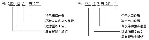 1、A型除尘机组型号、规格及装配方式标法: 2、B型除尘机组型号、规格及装配方式标法: |